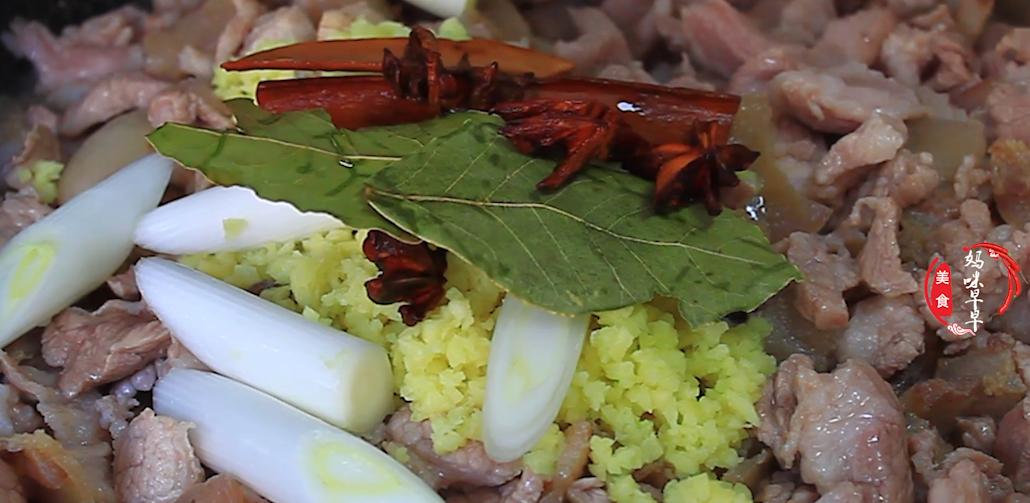 主要食材:前腿肉、大葱、生姜、八角、香叶、桂皮