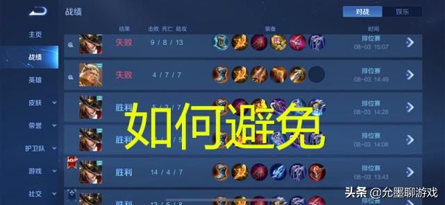 因为打匹配赛,即使你的数据再差,队友是举报不成功的,所以排位赛连胜之后,至少要打两局匹配赛,尽量用不会英雄,这样会增加失败的概率,对局失败,胜率会被大数据记录下来,以此来降低账号的隐藏分,可以有效地避免排位赛连胜之后连败,因为你的战绩面板,已经有失败的记录,所以隐藏分的数值自然也就下来了。