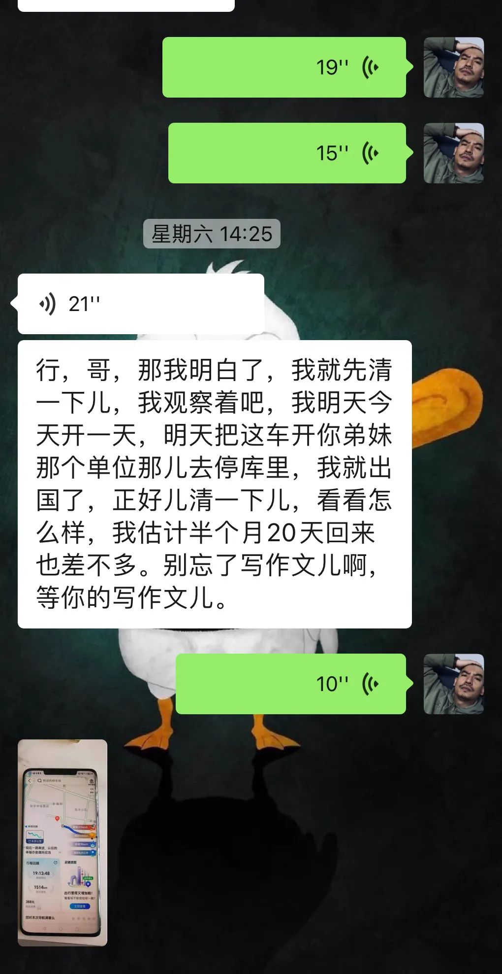车主因为在国外,自己老娘也有事忙着,我也不着急用钱,就劝车主别催自己老娘了咱没那么多鸡杂事,所以就最后一起再算吧。