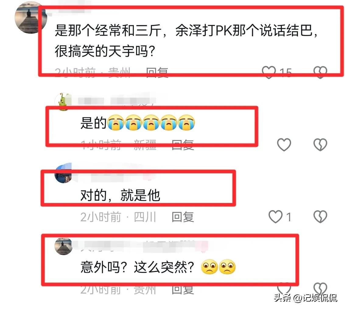 天宇去世的消息,让很多的粉丝感到一头雾水,因为这个消息来得太过突然,以至于网友们都难以接受和相信:明明前几天他还在直播打pk做惩罚,怎么会没有任何征兆就离开了呢?