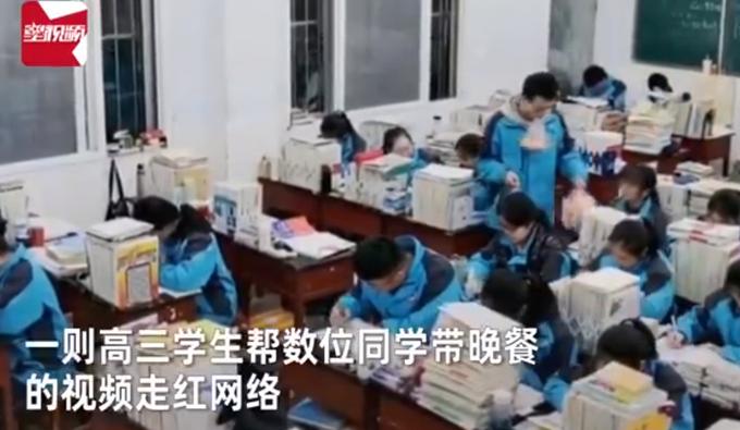 3月3日,河南林州一则高三学生帮数位同学带晚餐的视频走红网络。