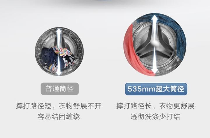 ➡️直径535mm业内顶级大筒径,大件衣物轻松抖散,洗的更干净。筒径一定是越大越好。