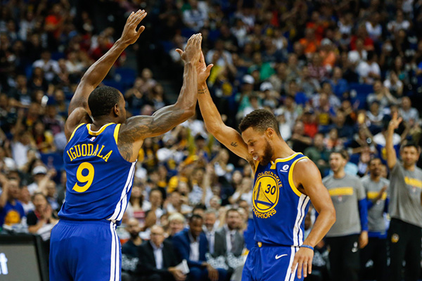 库里和伊戈达拉击掌相庆。