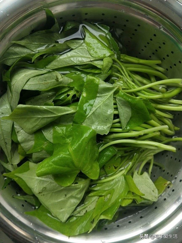 ①-这种红薯苗在农村比较常见,从长叶到收获期间都能吃到,但是在城市里吃得比较少,学名叫"薯尖",超市和菜场有卖,价格也不便宜。挑选的时候要选那种颜色深绿的品种,这样的红薯叶营养更加丰富,相比那种浅绿色的也更好吃。