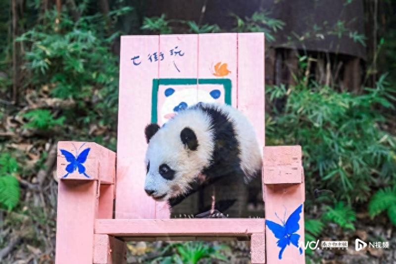广府大熊猫“妹猪”迎半岁宴,保育员称它淘气是个“小辣椒”