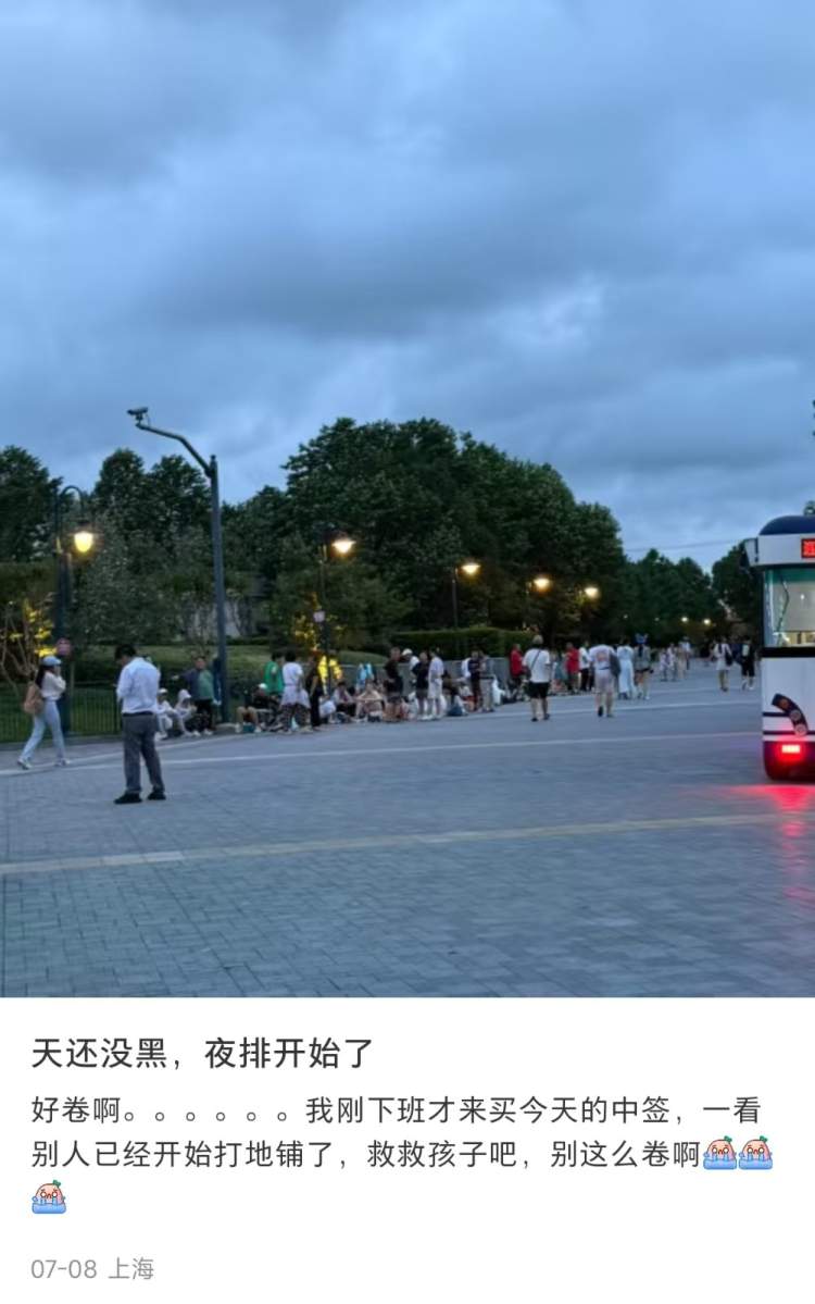 7月7日、8日、9日,玩家醉清风在上海迪士尼连续参加了三天夜排。“白天睡觉,夜里十二点到,早上七点多凭早享卡入园,抽完签先回去睡觉,到了购买时段再来。”