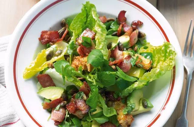除了做早餐,烤过的培根通常也可以作为沙拉配料来到我们午餐或者晚餐的餐桌上。
