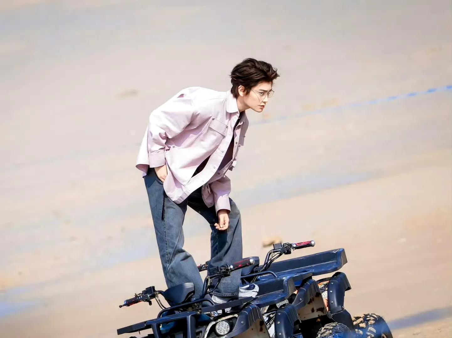 11月18日路透图中二人穿海岛服互动甜蜜,还被拍到携手演绎双人大片 ,有路透照显示丁禹兮在沙滩上戴墨镜开越野车。