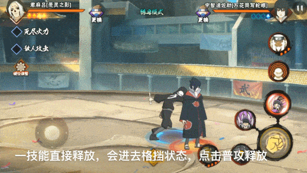 角斗场是火影忍者最核心的游戏玩点, 游戏不仅拥有引用了KOF 一样的3V3,奥义等模式,还加入了全场移动,替身,以及附加攻击辅助手段.甚至在有些角色对战中,或获胜后取得特殊的彩蛋.