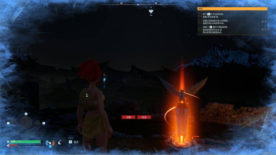 从这两张图片可以看出,基于大小的引力和昼夜变化设置的底层逻辑均建立于人眼的物理性质,像飞蛾趋火那般,促使玩家靠近巨物与发光物,再在玩家与这些场景之间的行进路线上填充资源、装备,让其遭遇开发者想要触发的事件,推动游戏进程。
