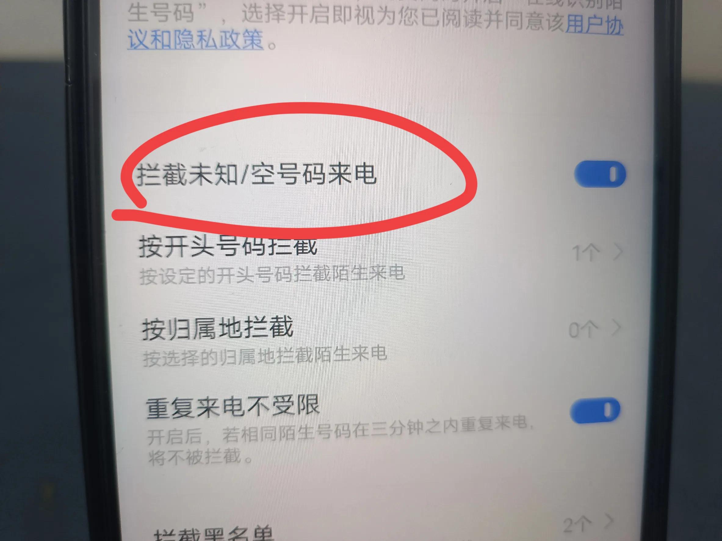 接着我们打开拦截骚扰电话(如上图所示)