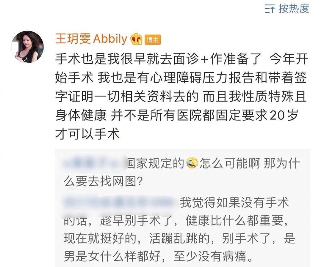 3月28日,网红艾比(Abbily)在其个人社交平台发文称“自己已经做了变性手术,由男孩子的身份变成了女孩子”。
