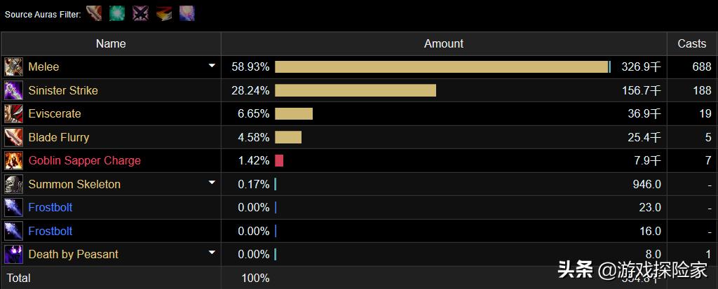 按照WCL上的顶级盗贼伤害占比,剔骨的总伤害占比是6.65%,因此剔骨9的提升达到了0.7%。