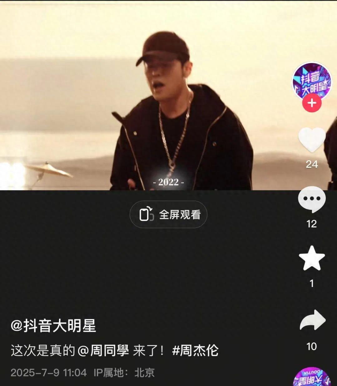 抖音大明星晒出周杰伦视频宣布:这次是真的@周同学来了!