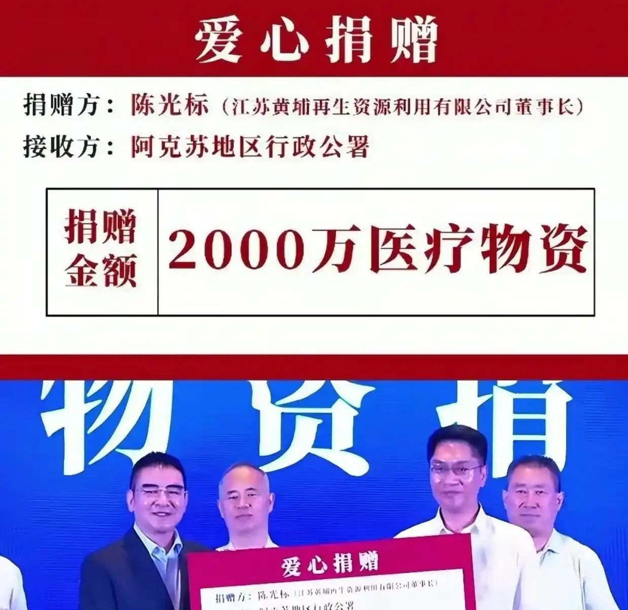 车厢里装满消毒喷雾机、医用口罩、急救药品,总价值2000万元。 这些物资由陈光标亲自协调物流,通过绿色通道直送,从调配到抵达仅用24小时。 面对镜头,他只说:“洪水退后,防疫是头等大事。 ”
