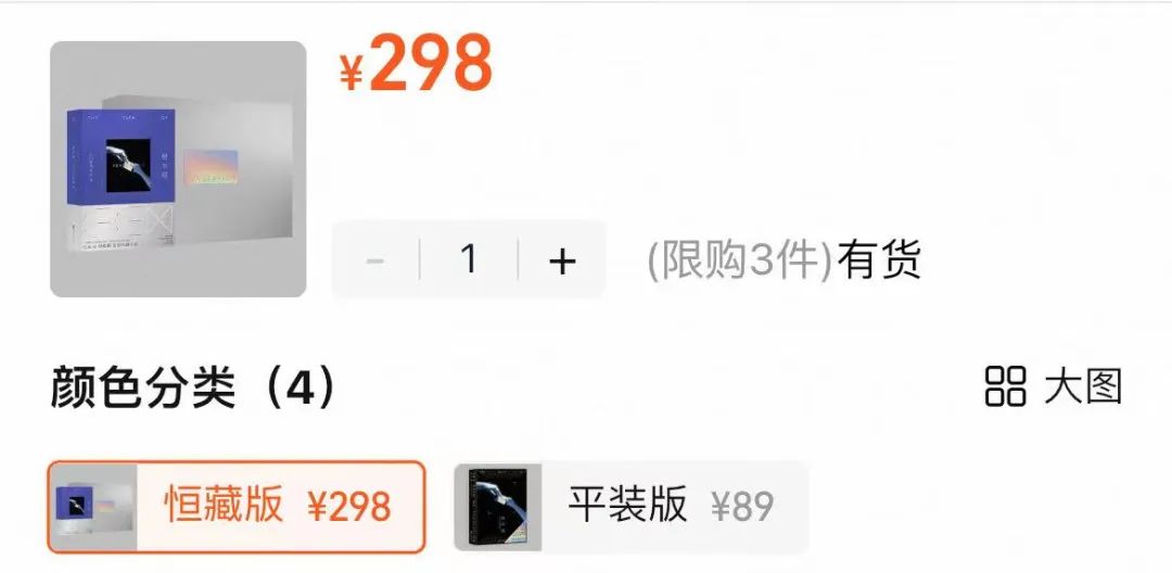 九派新闻搜索其工作室公布的购买链接发现,该销售平装版售价89元,恒藏版售价298元,限购3件。