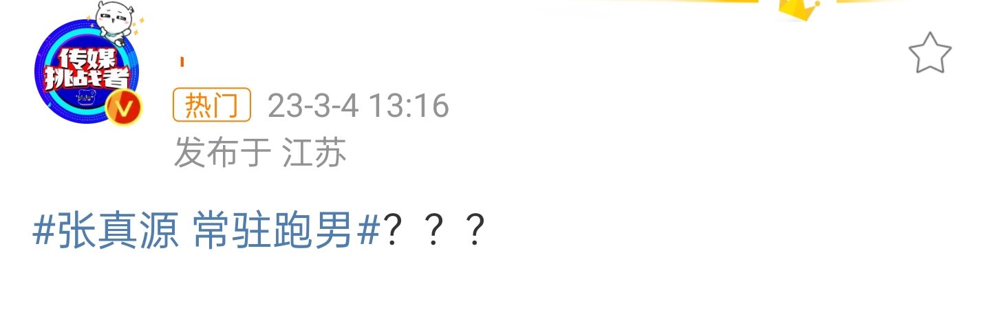 另外,最关键的是,蓝台系的营销号在“张真源常驻跑男”的热搜里面回复了一串表情,是三个问号。