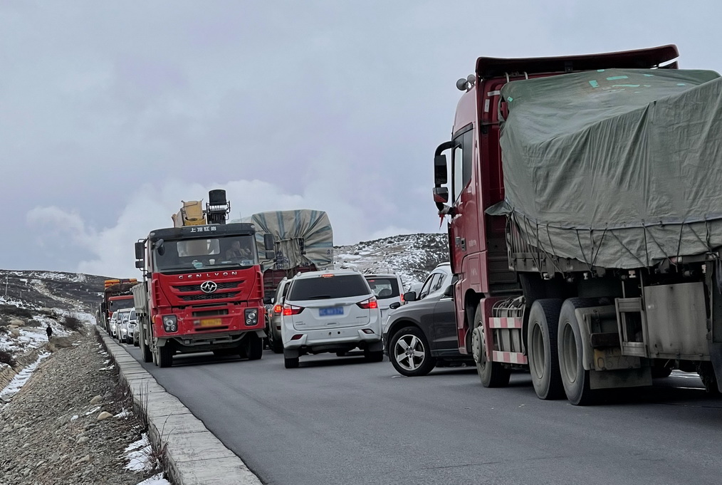 这一天开始在著名的风景大道G318上行驶了,没有想到第一天就遇到了拥堵。