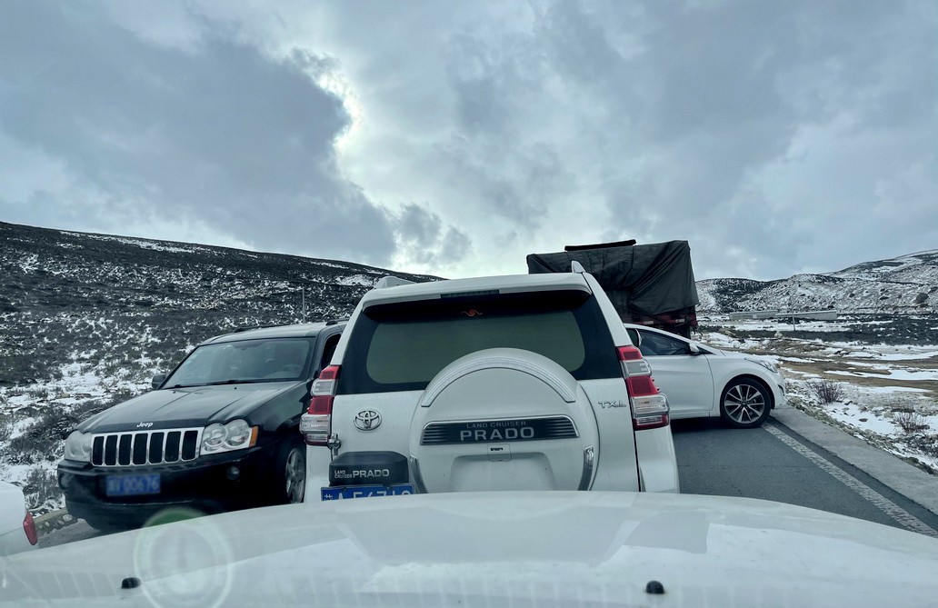 这一天的路程是晴天出发,然后经历风雪洗礼,最后行驶途中看“雪域风光”,虽然堵车不爽,但是风景不错。