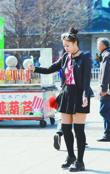 中央大街周边,一直都是最先换季开始的地方,这两天,气温攀升到7℃、8℃,小年轻们已经迫不及待的开始秀身材、秀新衣了。