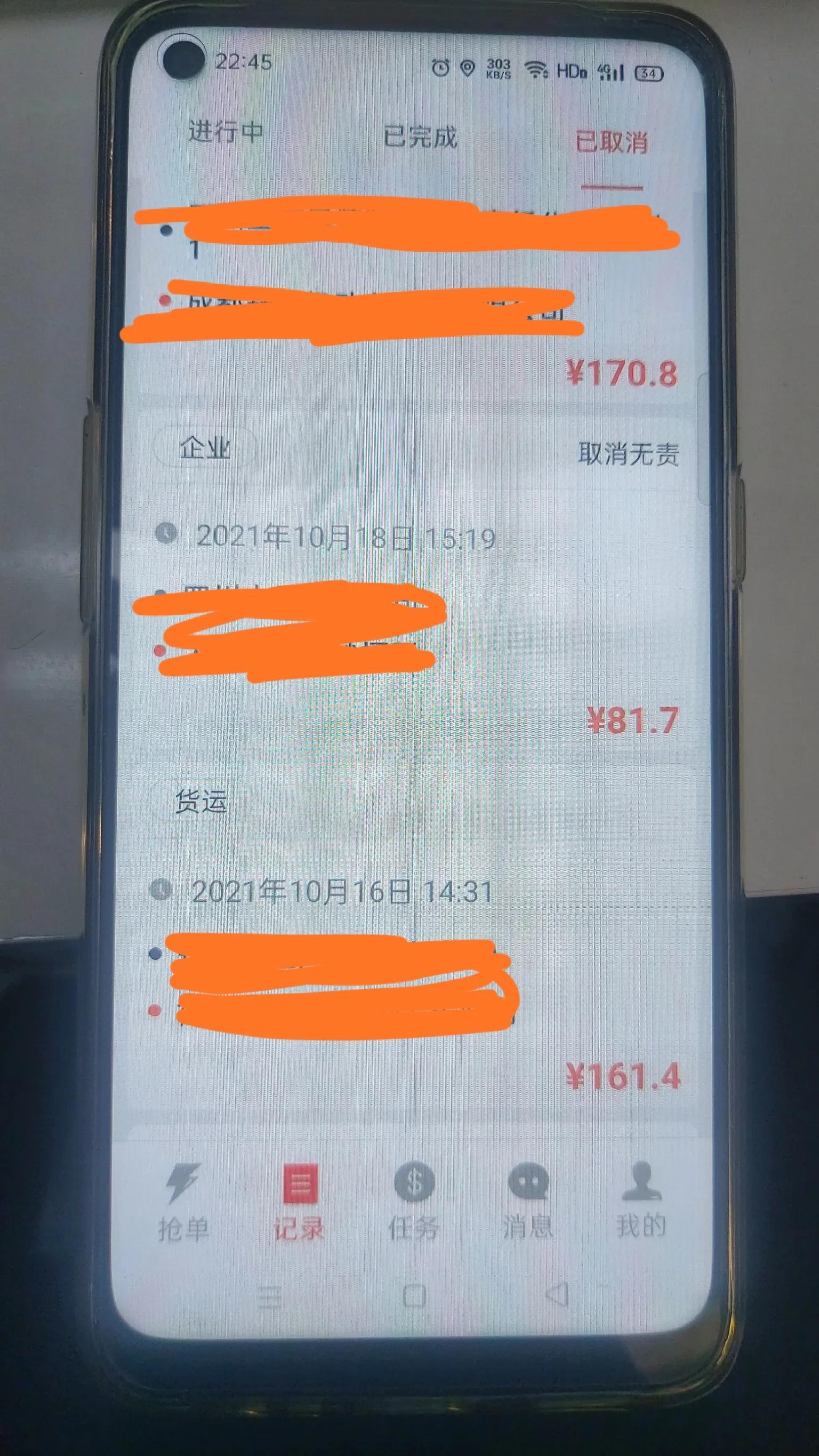 第二种取消方法:不管有没有通话成功或者是到达目的地,直接通过平台虚拟号码连续拨打发货人电话,拨了立马挂断,连续三次。再截图取消订单,取消原因选择无法联系客户。这个属于无法判定责任的选项,你的截图能证明有连续三次联系用户,所以无责。这种是目前本人用得最多也是最好用的一种方法。