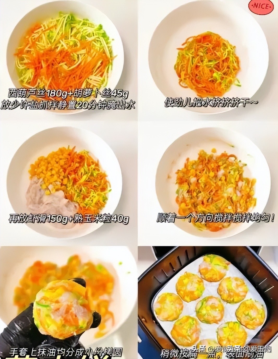 这道虾滑蔬菜肉饼鲜嫩可口,味道鲜美,特别适合小朋友们食用。