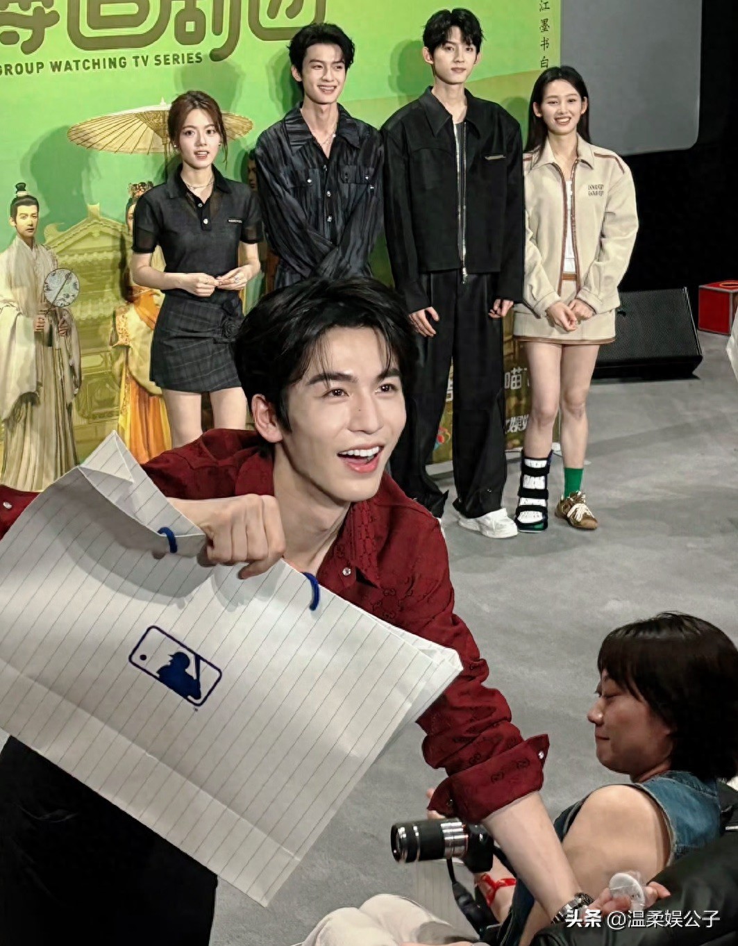 7月2号,古装剧《度华年》剧组扫楼宣传,全组出动,饰演长公主李蓉的赵今麦带着“驸马”张凌赫、“白月光”陈鹤一、以及“太子”李川齐齐露面。