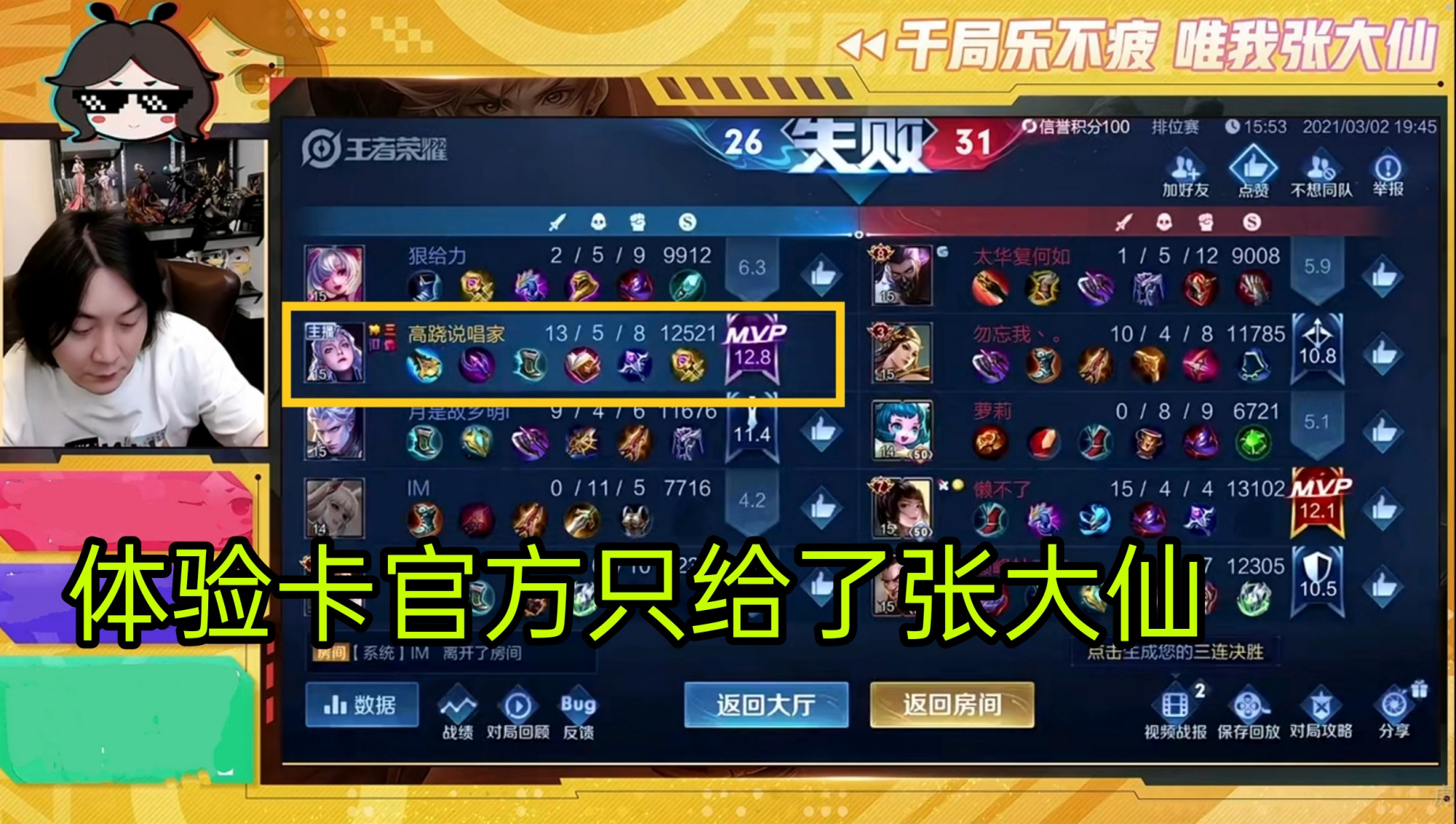 至于张大仙连一个排名都没有,而且还总是断大的问题,实际上张大仙不经常用这个号,如今的直播过程当中已经不怎么使用露娜,张大仙一直都是各种英雄随便玩,不会刻意的去打一个排名,更不会把巅峰赛自己的直播内容。因为张大仙直播间的宗旨“千局乐不疲”那样,目的是为了给一些普通大众玩家带来一些技术教学,同时让所有玩家感受到自己直播的快乐,这就是张大仙的目的。