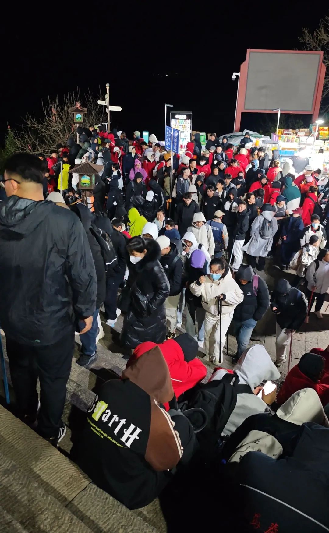 游客夜登泰山看日出有多拼?人手一件御寒服,山顶公厕挤满避寒的人