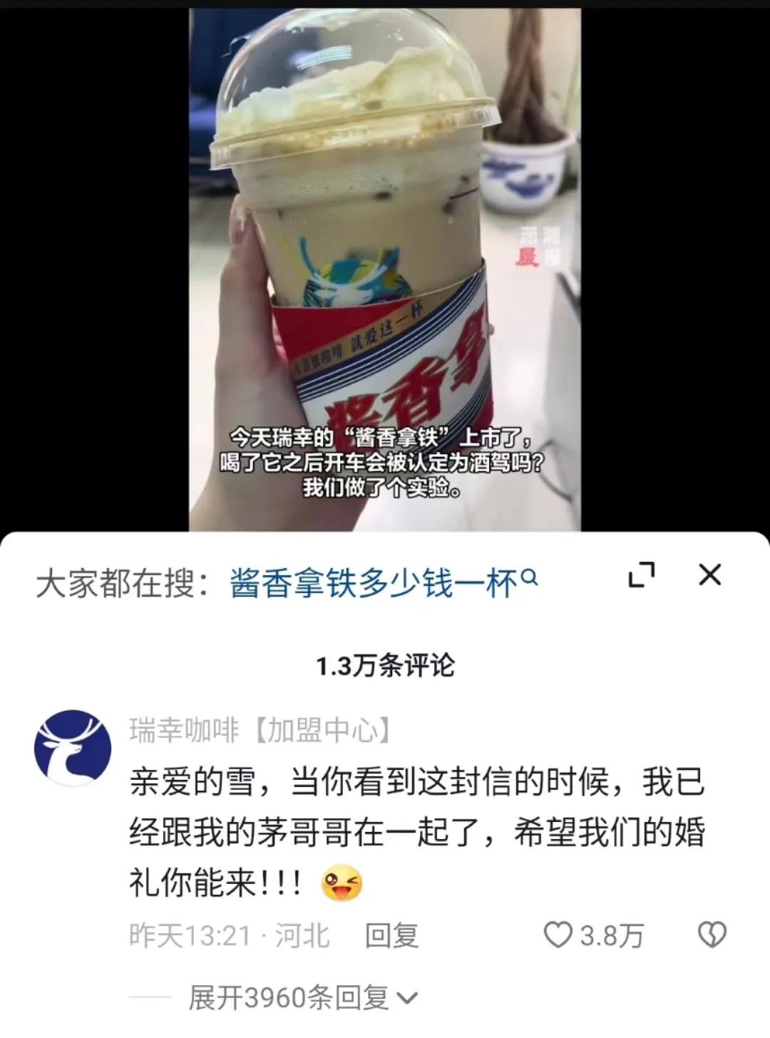 瑞幸茅台联名消息一出,官博下边纷纷cue到蜜雪冰城?