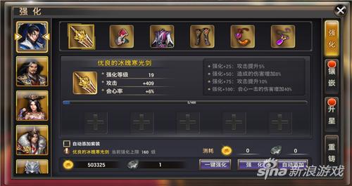 在帮派商店中也会随机出现各种金装备碎片,集齐碎片之后可以直接合成获得,如果在商店中没有看到你想要的,那么还可以通过消耗元宝来更新商店商品。而这里购买的主要消费主要是消耗帮贡来购买装备。