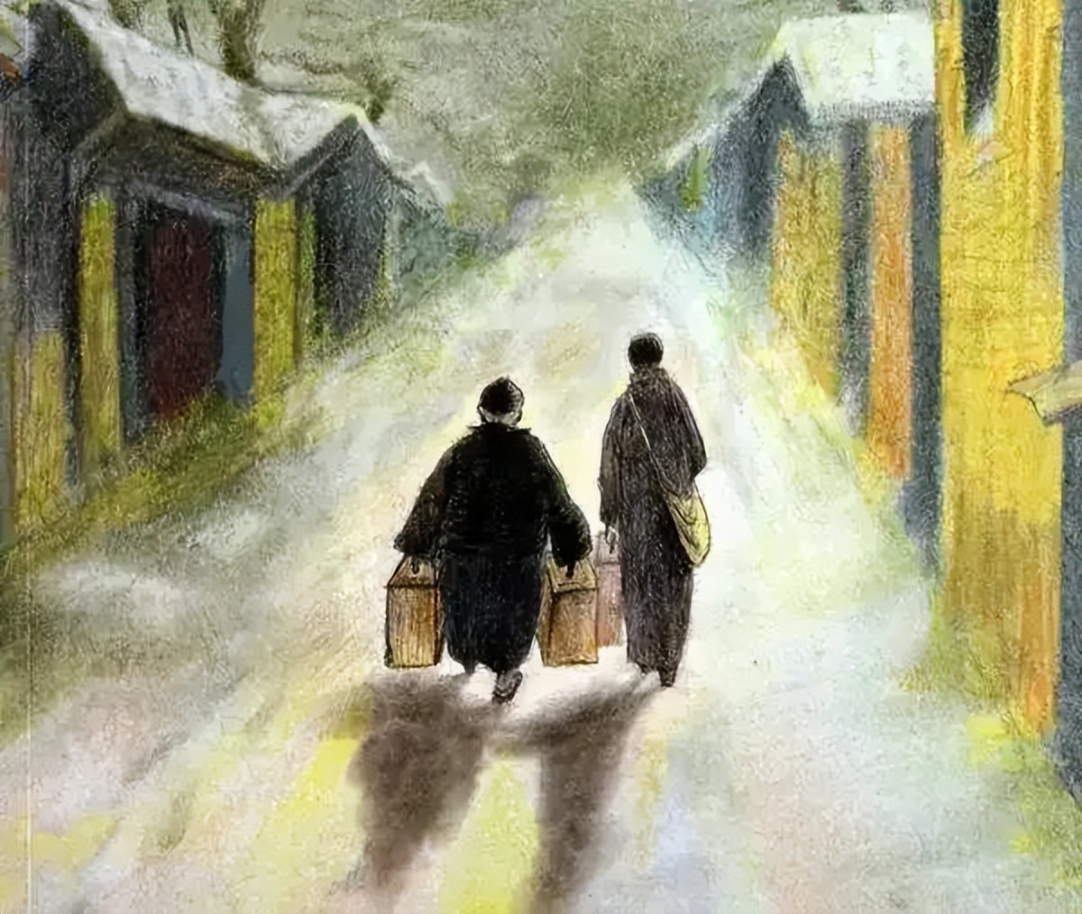 一路上,父亲既要照看行李,又和脚夫讲价钱。