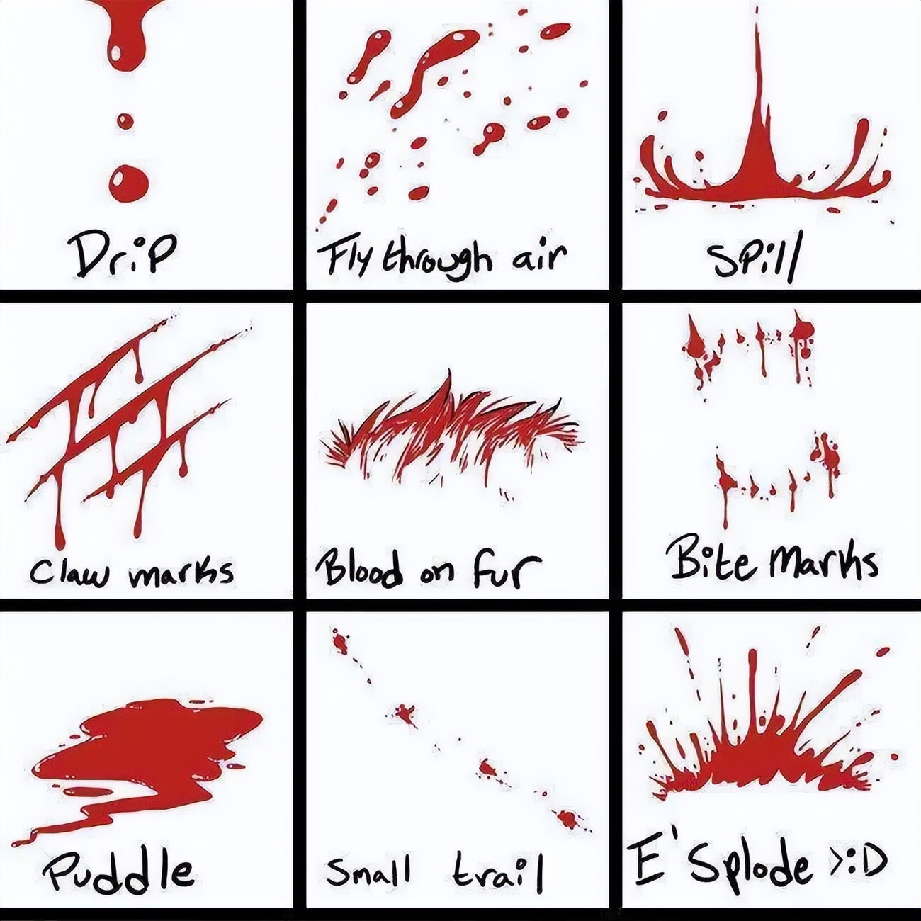 以上就是小编为大家从网络上整理分享的教程啦,主要是关于各种 “血” 的画法!!教程非常简单,相信这篇教程肯定会大家有所帮助,赶紧收藏学习吧~