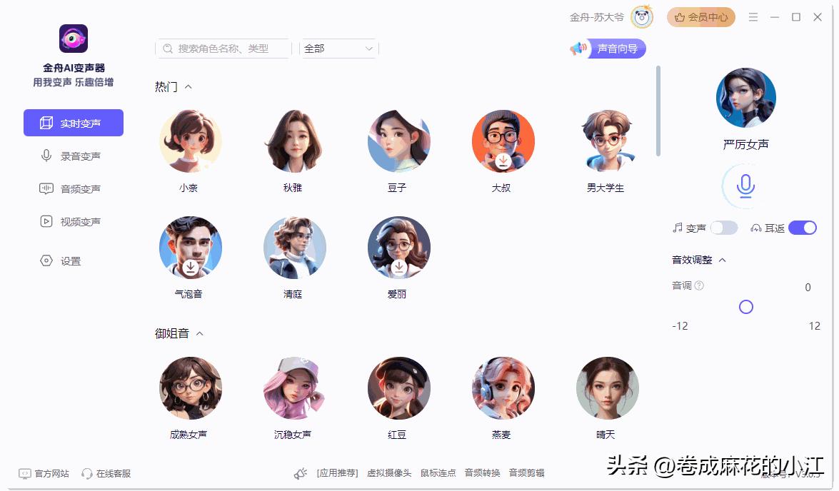 金舟AI变声器是一款基于人工智能技术的电脑变声软件,可以实现声音的即时变化和调整,其音色丰富、变声处理功能全面,不仅满足了用户在音频编辑上的基本需求,还能够在多个场景中实现音频的个性化处理。