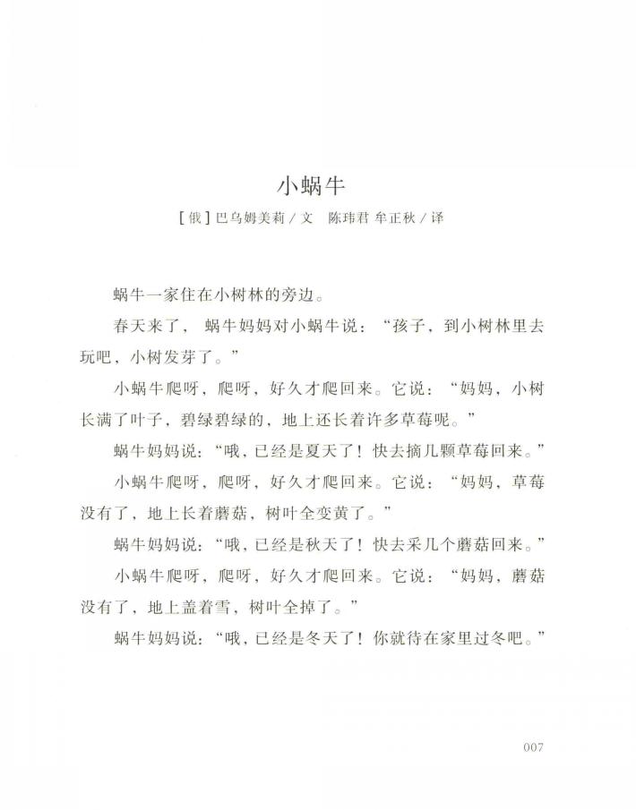 比较一下,原文里还是带有明显的讽刺意味,讽刺了小蜗牛的爬行速度,赶不上季节的变化。