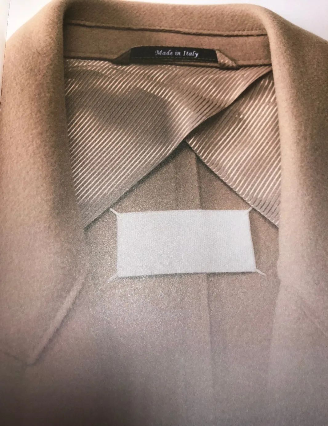 与其他品牌很有识别度的老花logo相比,Maison Margiela甚至没有logo和吊牌:只是一块儿四角用线固定、可以随时扯下来的白色布标。