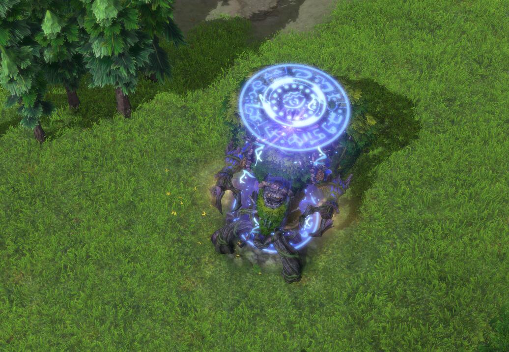 这里我们需要注意的是,TP和单传的光圈有着非常明显的大小差异。但是,由于人族和兽族这两个种族的主基地模型占用位置看上去相对较低,且紧贴地面的原因,光圈看上去并不明显。这才是导致了很多玩家,在骚扰人族和兽族基地时,会在看到对手单传后,误以为是TP会选择直接撤离的原因所在。而NE的基地基座面积较小,UD的基地又是浮在空中,光圈大小更是非常明显的原因,所以大家一眼就能看出差异。