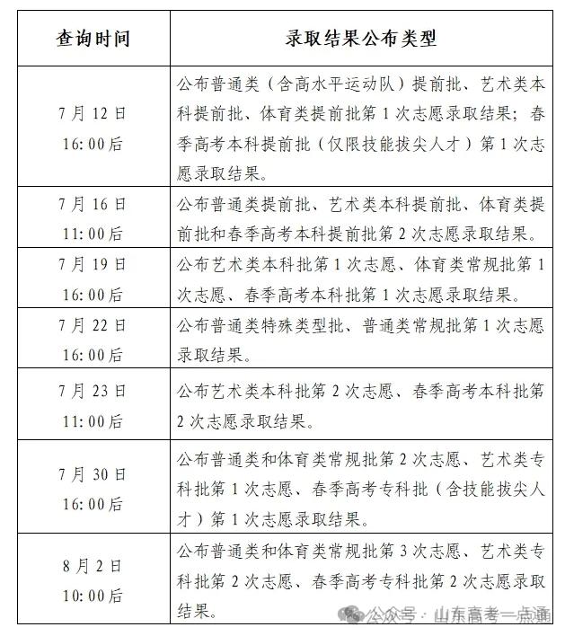 注:根据录取进度不同,录取结果公布的具体时间可能会略有变化,请及时关注山东省教育招生考试院网站。