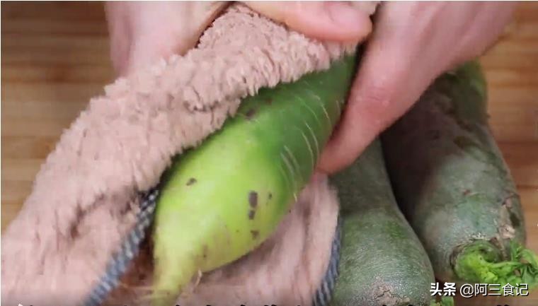 1.萝卜一定要记得不能用水进行清洗,要用清洗干净的棉布擦干净萝卜上面的泥土。