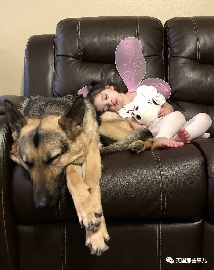 狗狗来到家里后,成了温暖守护孩子的保镖。”