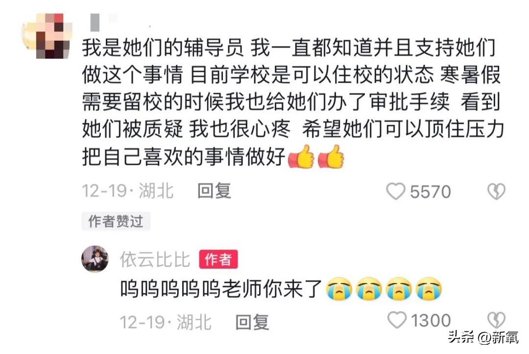 她们的辅导员在评论区留言,说还帮她们办了寒暑假留校的审批手续,确实是在校生。