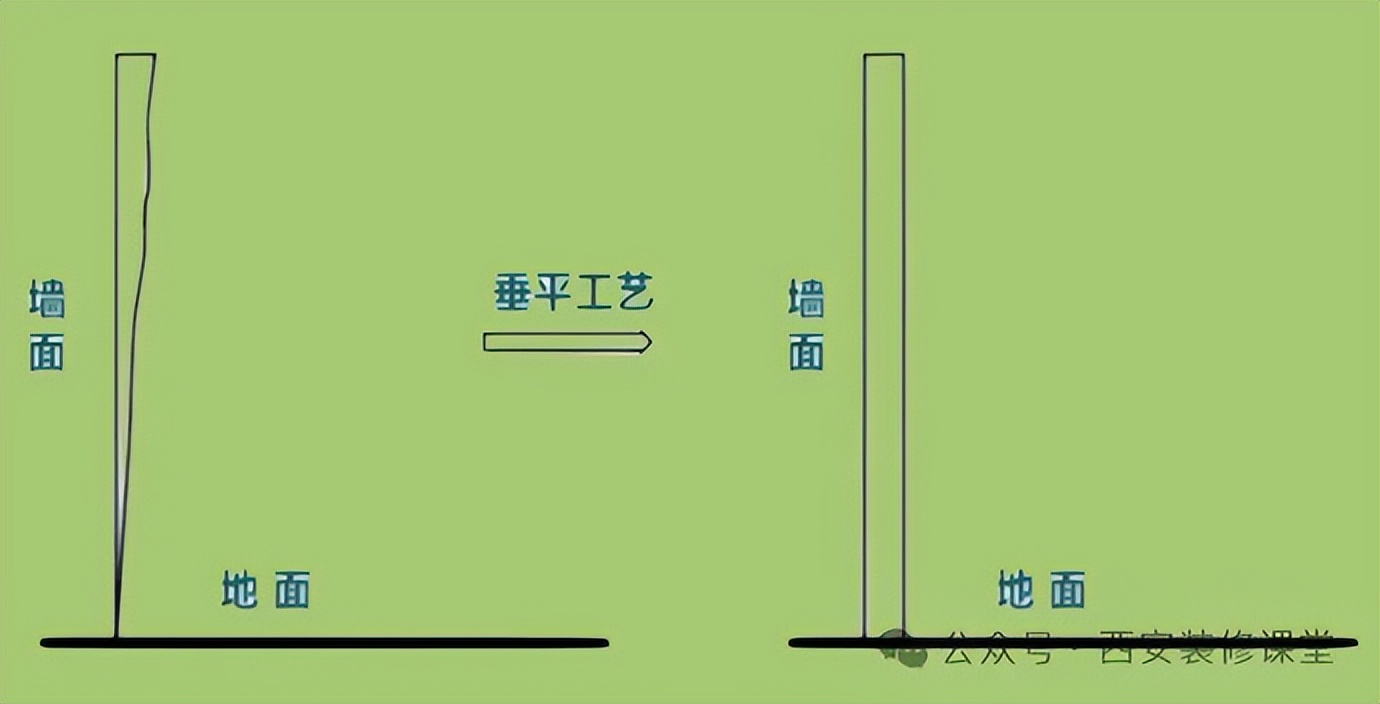 垂平工艺如图所示,不仅解决墙面的坑洼不平,你家墙面不垂直的地方都可以做到垂直横平竖直。