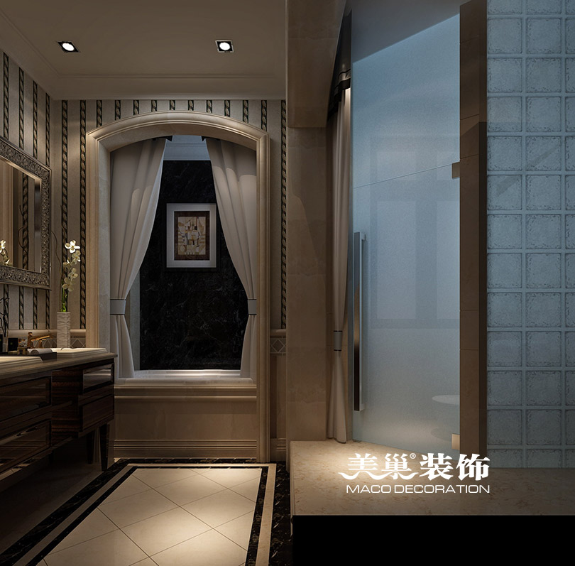 财信圣堤亚纳装修效果图儒雅与沉稳新中式案例——卫浴设施