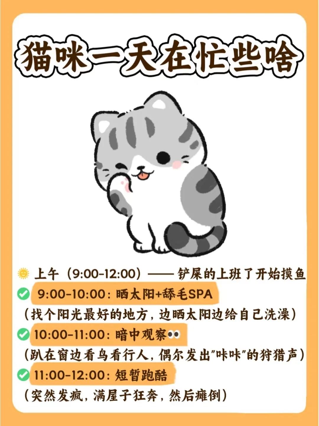 当我看到网友整理了一张猫咪的作息时间表,我酸了…