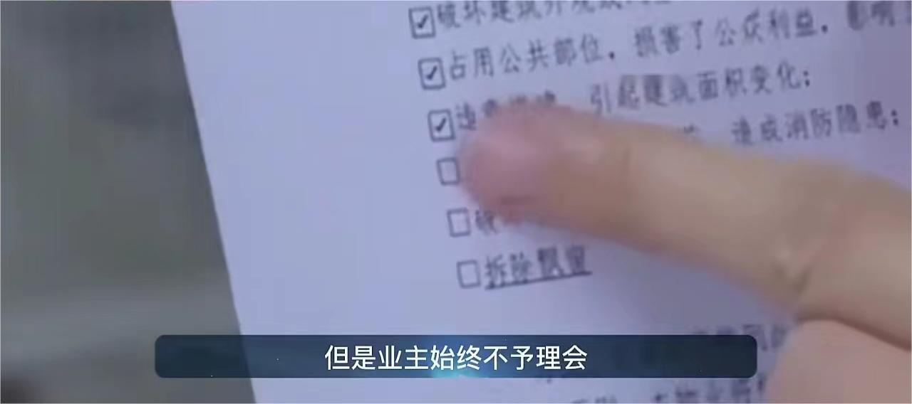 但面对物业下达的整改通知书,1801的业主却视若无睹,始终不予理会。