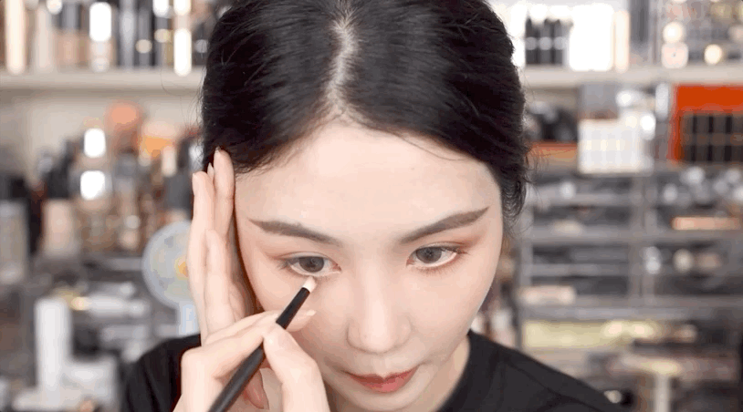 而这时候眼睑下至的化法就能让原本的眼尾趋势变得更柔和,将整个眼形调整成一种平行四边形的感觉。