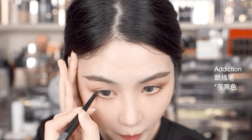 再蘸取黑色眼线画在内侧,让眼线更有层次感。