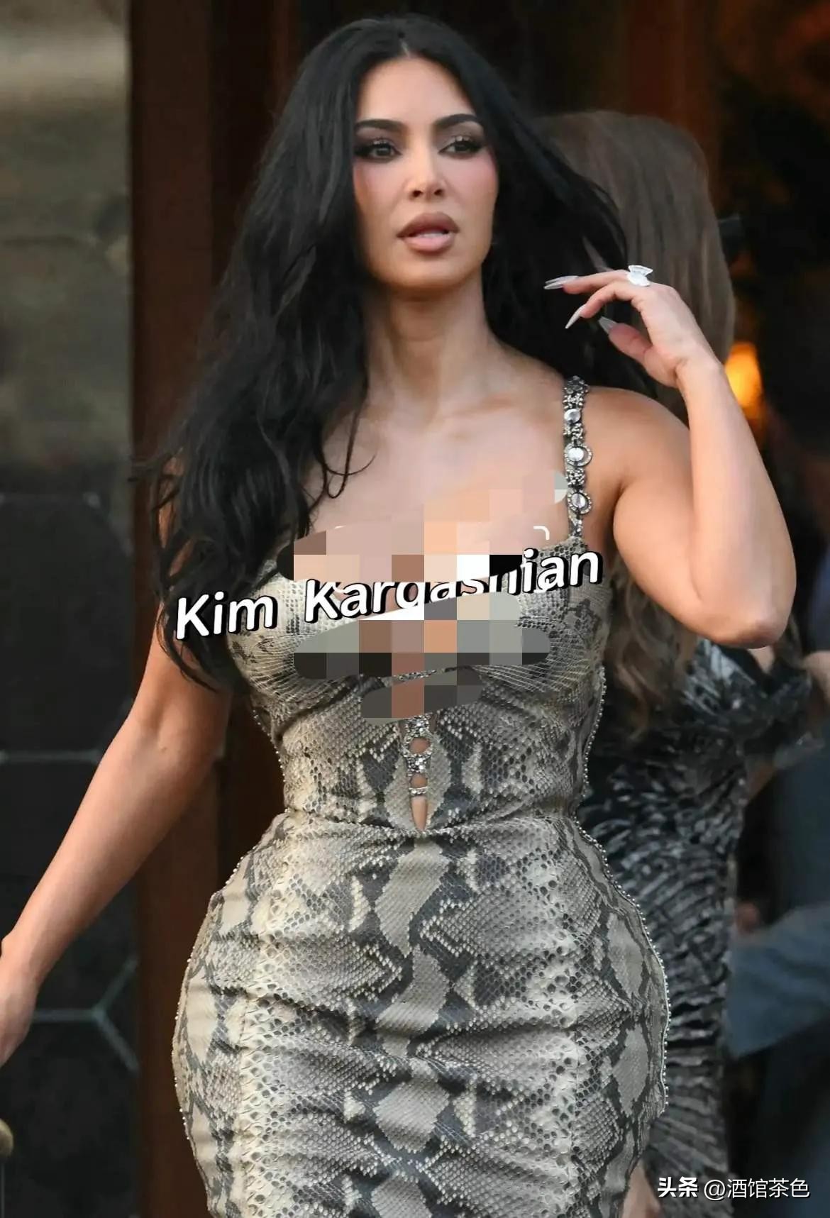 卡戴珊家族的阵仗丝毫不逊色。金·卡戴珊和妹妹科勒站在宴会入口,金的蛇纹紧身裙勾勒出她的身形,科勒则选了件深色礼服,姐妹俩站在一起,吸引了不少目光。