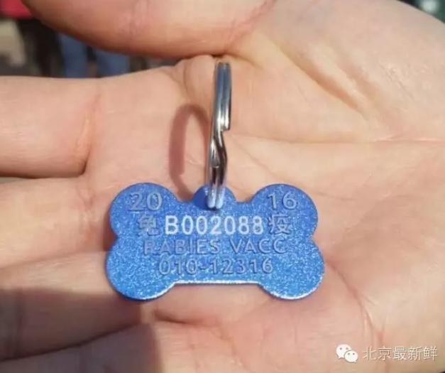 对,狗牌!根据《北京市动物防疫条例》,所有的犬只都要进行狂犬疫苗强制免疫,而且必须佩带免疫标识,也就是狗牌出门。