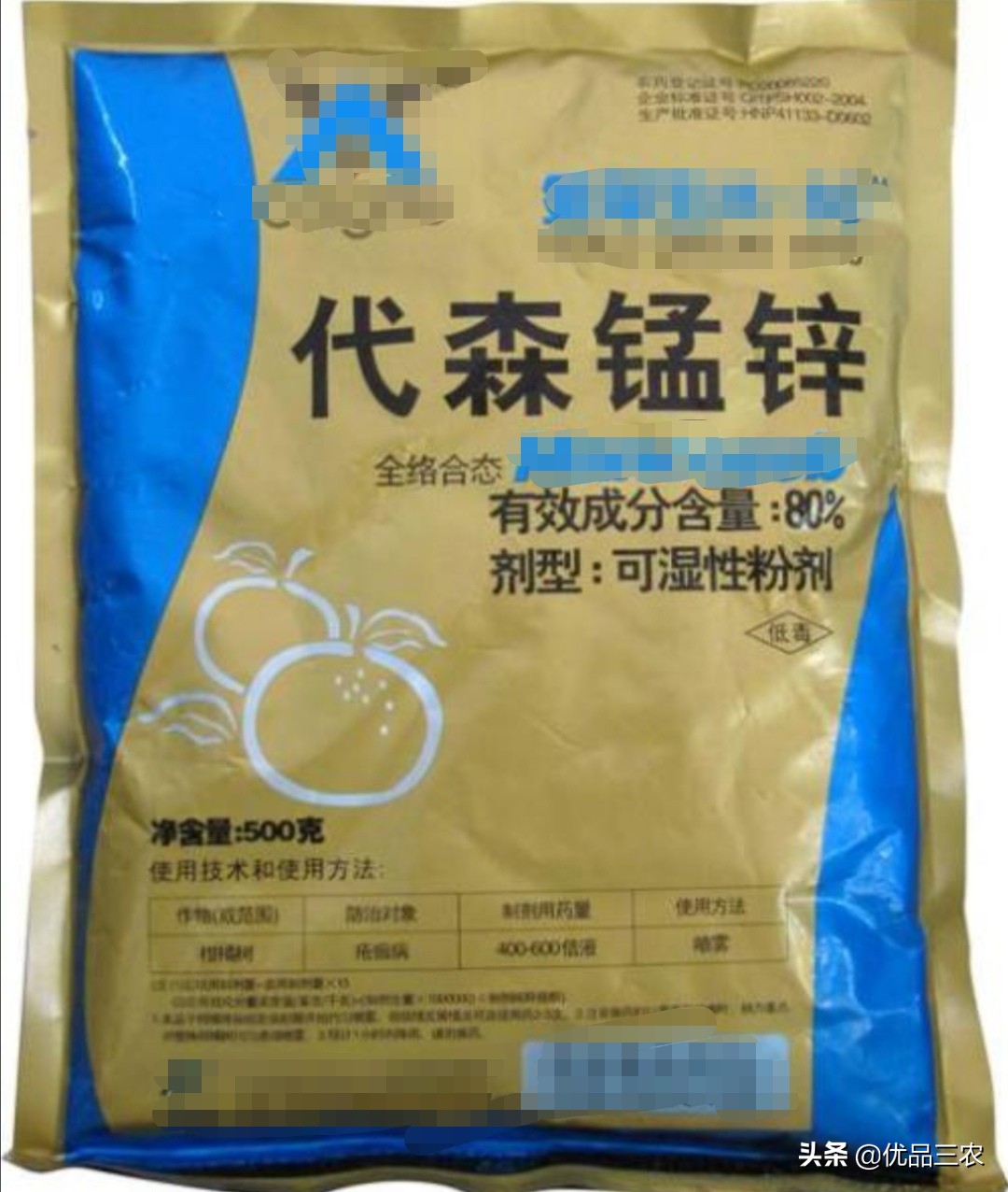 同时代森锰锌还有补充微量元素的功能,促进植物生长。这是很多其他杀菌剂所不具备的,因为代森锰锌中含有锌离子和锰离子,锌有助于嫩叶子和嫩芽的发育,锰助于植物光合作用,一药防病又补充微量元素。真是一味不可多得的良药。同时耐雨水冲刷,持效期长,价格相对又比较经济。而目前最为出名的代森锰锌,就是大生M-45,80%的代森锰锌可湿性粉剂,贝期特大生M-80;以及太生等,全都是络合态,络合态与普通的代森锰锌有什么区别,我这里就不详细介绍了,如果有什么疑问?大家下面留言!我大家一一介绍。最后我们再来了解使用过程中一些注意事项,这样就可以很好的使用代森锰锌这个尝试了。